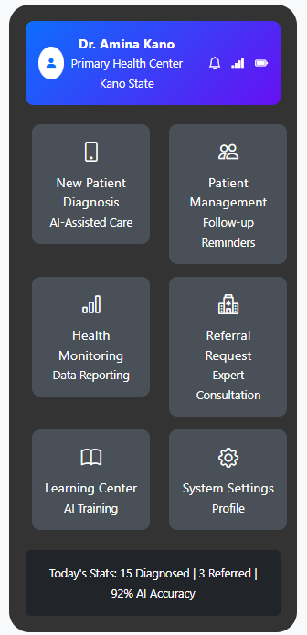- Instant Diagnostic Support: A nurse uploads a chest X-ray via tablet; the AI provides a TB diagnosis suggestion and referral recommendation in seconds.